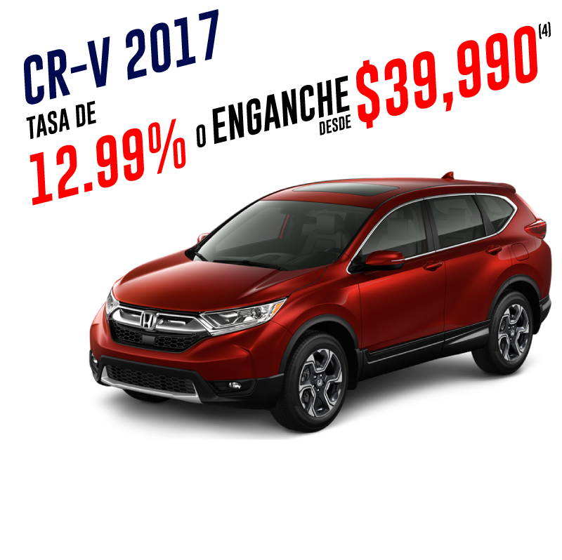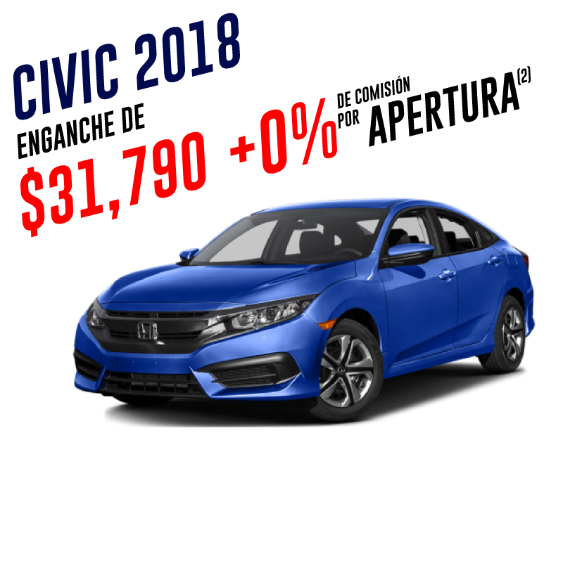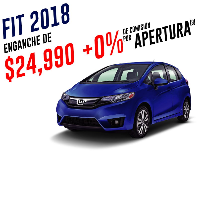 (1) Enganche desde $24,990 aplica para Honda City 2018 con un 10% de enganche a un plazo de 72 meses. 0% de comisión por apertura en la compra de Honda® City® versión LX MT, LX CVT y EX CVT modelo 2018, 2017 y 2016, con un pago desde 10% (diez) de enganche y plazos de 12 a 72 meses, con un CAT de 37.8% sin IVA promedio informativo, que considera el costo del seguro de vida, seguro de daños y comisión por apertura de crédito. Crédito exclusivo con Honda Finance. No incluye accesorios del vehículo. No aplica con otras promociones. Para mayor información acerca de requisitos y opciones de financiamiento consulta a nuestros asesores de venta. (2) Enganche desde $31,790 aplica para Honda Civic 2018 con un 10% de enganche a un plazo de 72 meses. 0% de comisión por apertura en la compra de Honda® Civic® versión EX MT, EX CVT, Turbo CVT, Turbo Plus CVT, Coupé y Type-R modelo 2017 y versiones EX MT, i Style, Turbo Plus y Touring modelo 2018 con un pago desde 10% (diez) de enganche y plazos de 12 a 72 meses, con un CAT de 34.61% sin IVA promedio informativo, que considera el costo del seguro de vida, seguro de daños y comisión por apertura de crédito. Crédito exclusivo con Honda Finance. No incluye accesorios del vehículo. No aplica con otras promociones. Para mayor información acerca de requisitos y opciones de financiamiento consulta a nuestros asesores de venta. (3) Enganche desde $24,990 aplica para Honda Fit 2018 con un 10% de enganche a un plazo de 72 meses. 0% de comisión por apertura en la compra de Honda® Fit® versión Fun MT, Fun CVT, HIT CVT modelo 2018, con un pago desde 10% (diez) de enganche y plazos de 12 a 72 meses, con un CAT de 37.8% sin IVA promedio informativo, que considera el costo del seguro de vida, seguro de daños y comisión por apertura de crédito. Crédito exclusivo con Honda Finance. No incluye accesorios del vehículo. No aplica con otras promociones. Para mayor información acerca de requisitos y opciones de financiamiento consulta a nuestros asesores de venta. (4) Tasas desde 12.99% en la compra de Honda® CR-V® en versión EX, TurboPlus y Touring modelo 2017, con un pago desde 20% de enganche y plazos desde 12 a 72 meses, con un CAT de 28.65% sin IVA promedio informativo, que considera el costo del seguro de vida, seguro de daños y comisión por apertura de crédito. Enganche desde $39,900 en la compra de Honda® CR-V® en versión EX modelo 2017, con un pago desde 10% de enganche y plazos desde 12 a 72 meses, con un CAT de 23.61% sin IVA promedio informativo, que considera el costo del seguro de vida, seguro de daños y comisión por apertura de crédito. Crédito exclusivo con Honda Finance. No incluye accesorios del vehículo. No aplica con otras promociones. Para mayor información acerca de requisitos y opciones de financiamiento consulta a nuestros asesores de venta. Las fotografías, equipamientos, colores, características, materiales, especificaciones técnicas y/o accesorios de los vehículos que aparecen en esta publicación son de uso netamente ilustrativo e informativo. Consulte términos y condiciones con nuestros asesores de ventas. Vigencia del 1 al 31 de enero de 2018.